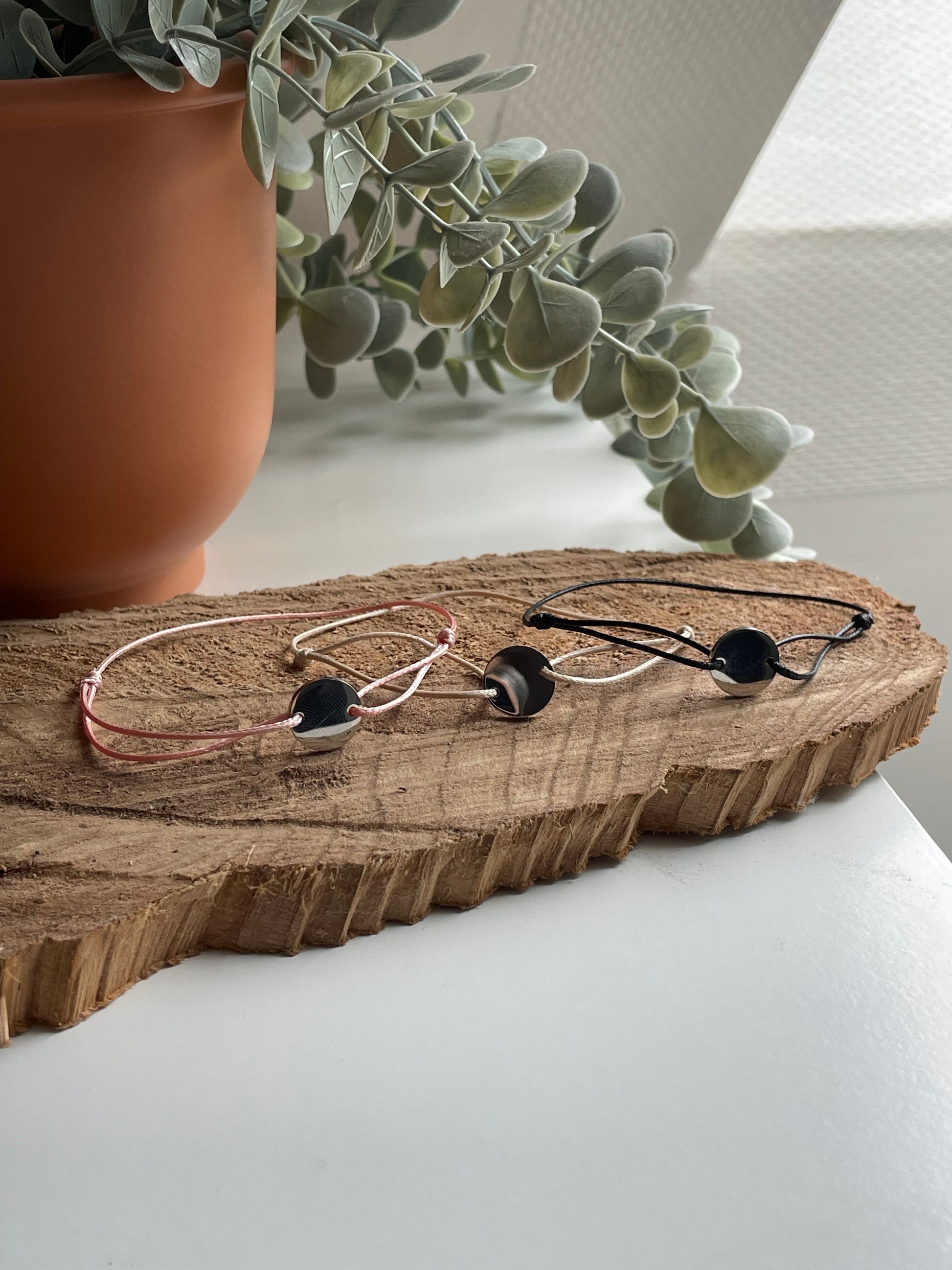 Discret, raffinĂ© et plein de charme, ce bracelet Ă lien colorĂ© est le petit dĂ©tail qui fait toute la diffĂ©rence. Son mĂ©daillon finement gravĂ© dâune initiale ou dâun symbole devient un porte-bonheur personnel, Ă porter chaque jour.